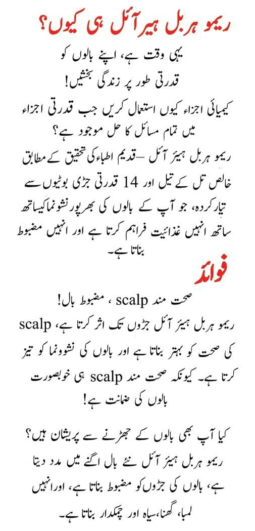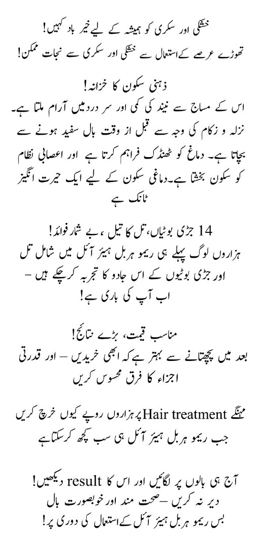 Hair.”You care about what goes on your hair, and so do we. That’s why Remu Herbal Hair Oil is made with herbal ingredients, ensuring